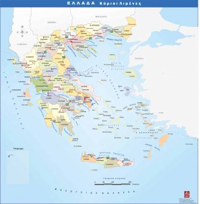 Χάρτης Ελλάδας-Κύριοι Λιμένες